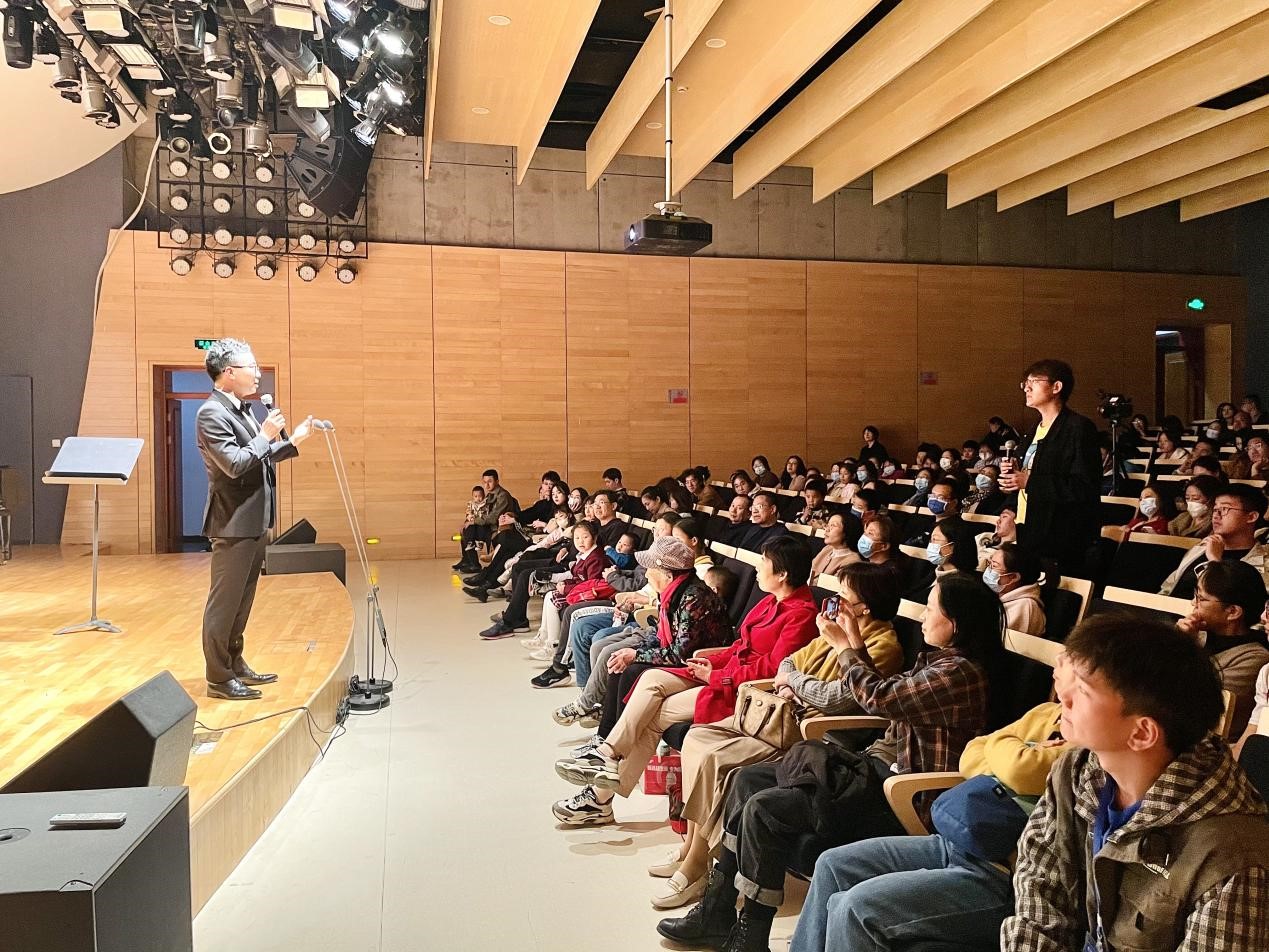 表演结束,音乐会进入互动环节,宋国旭老师耐心解答现场观众就声乐演唱提出的问题,向大家普及丹田运用技巧、日常歌唱训练方法及转音知识,介绍《茶花女》中场外配合演唱的独特作用,分享自身对说和唱的关系、歌曲情感把控与传达的见解,人文学院工会为参与互动的观众赠送了由宋国旭老师亲笔签名的精美节目单。