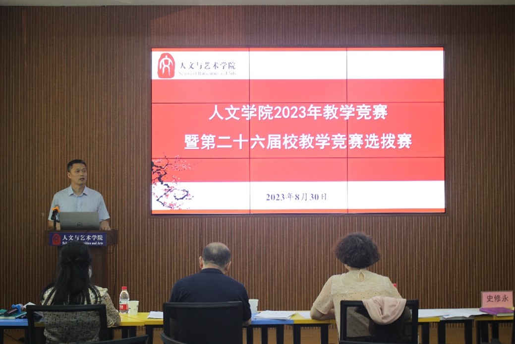 8月30日下午,人文学院2023年教学竞赛暨第二十六届校教学竞赛选拔赛在文科楼A111举行。本次比赛由刘振副院长主持,7名教师参加,边和平教授、温晓慧教授、苏海雁老师担任评委,并对参赛教师提出点评与建议。