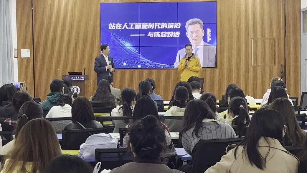 10月21日,趣加互娱总裁、韵文博鉴董事长、九点水美术馆理事长汉语言文学专业1999级校友陈玉林,返校参加同届同学毕业20周年纪念,以《站在人工智能时代的前沿》为题,与网络与新媒体本科生、新闻与传播系研究生以及其他专业的同学,就创业创新、人工智能、互联网和新媒体发展等话题进行交流与分享。新传系主任曹洪洋主持活动,新传美术联合支部书记何双秋全程陪同。