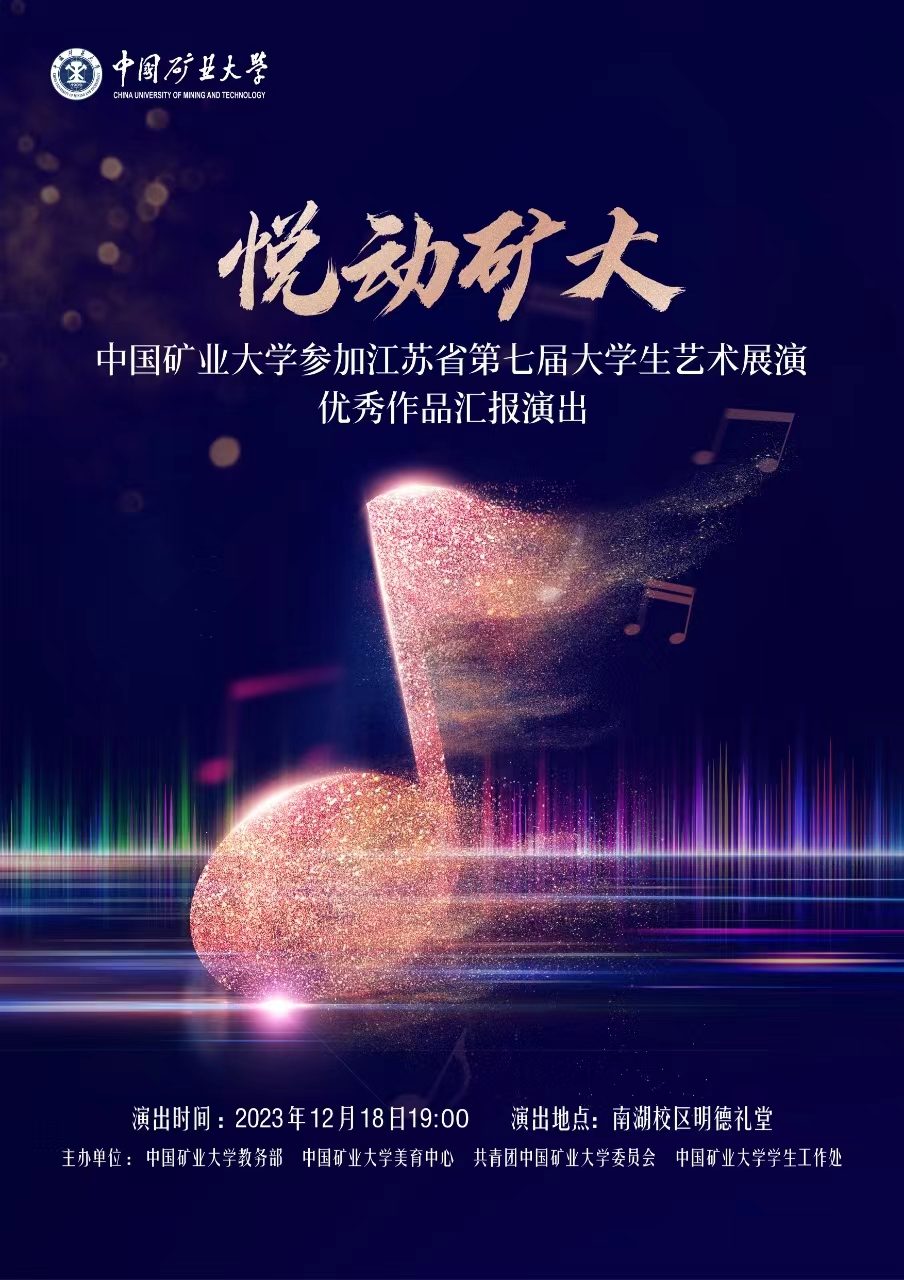 演出预告:“悦动矿大”2023免费性爱直播-华人性爱直播 体育美育劳育成果展暨我校参加江苏省第七届大学生艺术展演优秀作品汇报演出
